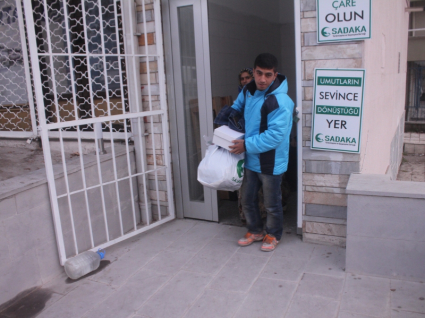 Gezginci ailesi fertleri Sadaka Hayır Mağazası’na getirilerek baştan aşağı giydirildi. Aile, yaşadıkları yerden Sadaka Derneği’nin servisiyle alınarak mağazaya getirildi. Kışlık kabandan ayakkabıya kadar bütün giyim ihtiyaçları giderildi. Okula giden çocuklara okul çantaları hediye edildi. Ailenin daha küçük olan çocukları için ise çocuk arabası ve ana kucağı verildi.